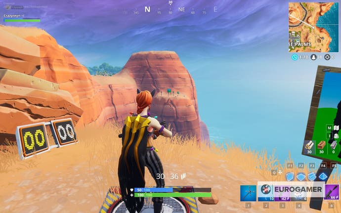 Det svåraste skjutgalleriet som någonsin träffat världen av Fortnite kommer i form av detta långväga tredje etappskyttegalleri som är nordost om Paradise Palms. Spelare måste stå vid kusten och skjuta över en oceanisk klöv till en långt avsats. Enskyttskyttare gör inte tricket på grund av deras klumpiga omlastningstider.