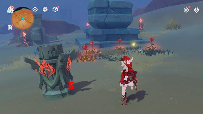 För att aktivera Pyro -monumenten behöver du en karaktär som använder samma element. Det enklaste alternativet är bärnsten och hennes laddade bågattack fungerar perfekt. Den ordning du behöver för att aktivera monumenten är dock inte så lätt att ta reda på.